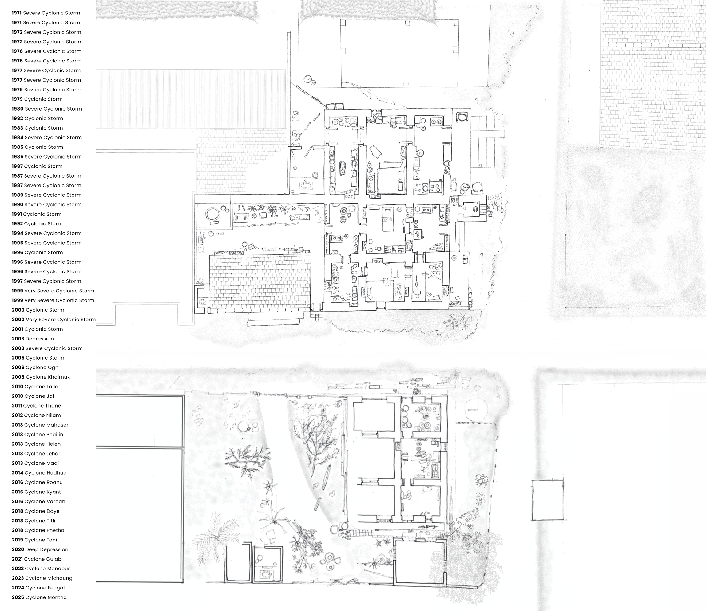 To show the incremental shift, small elements are highlighted. Each element represents a specific moment of change that was made between 1960 and 2025, such as the addition of a wall, the repair of a roof, the construction of a well, or the creation of a shaded seating area. Along with everyday needs, cyclones and heavy rain also shaped these changes. This allows multiple time periods to exist within a single frame. As a result, the house is understood not as built all at once, but as something that is slowly shaped by everyday actions.